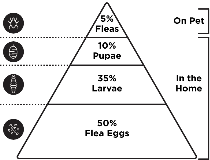 Since 95% of a flea problem consists of eggs, larvae, and pupae in your environment, you can focus on speeding up eradicating these after treating your pet.