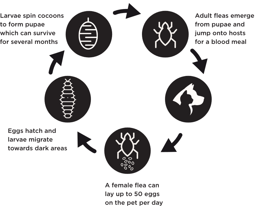 - Newly emerging fleas in the home will jump on the pet and then be killed by the product.